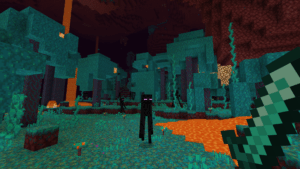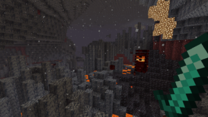 アンダーワールド(黒) ネザーの「玄武岩デルタ」をイメージした曲です。トゲトゲしい感じの地形なので曲も高低をつけてギザギザ感を出しました。ポーピーって鳴る音はマグマキューブをイメージし、どんどん細かくなっていく感じも表現しました。